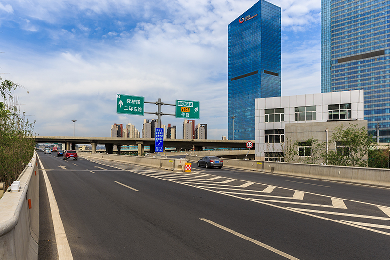二環(huán)南路西起 G104,東至扳倒井立交,全長約 11.65 公里,全線經(jīng)過三個立交,分東西兩段。西段從 G104 到舜耕路以東 60 米,全長約 6.8 公里,包括地面道路、高架、地道、隧道和路塹等多種形式。東段從舜耕路東 60 米到扳倒井立交,主要為高架橋形式。